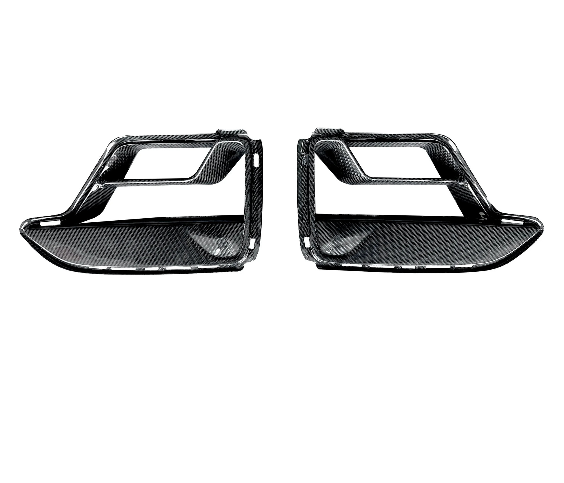 The BMW F90 M5 Carbon Fiber Air Ducts are premium performance upgrades designed to enhance airflow and aesthetics. Crafted from lightweight and durable carbon fiber, these air ducts improve cooling efficiency while adding an aggressive, motorsport-inspired look to your vehicle. Precision-engineered for a perfect fit, they seamlessly integrate into the front bumper, elevating both functionality and style. Ideal for F90 M5 owners seeking a blend of performance and luxury design.